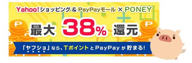 PONEYには購入価格の最大38%を還元する「Yahoo!ショッピング高還元」が