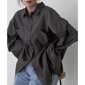 ブラウス シャツ コード刺しゅうワイドカフスオーバーシャツ レディース