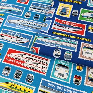 JR 新幹線・特急 切手柄 オックス 50cm単位 | 切売り 切り売り 生地 布 布地 コットン100% 電車 特急 鉄道 車両 ドクターイエロー N700系 トレイン 通園 通学