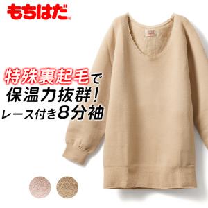 もちはだ 旧パッケージ品 裏起毛 防寒 あったか 8分袖 U首 レディース 秋冬 ワシオ 暖かい 軽い インナー 起毛 保温 抗菌防臭加工 分厚い 日本製 婦人 肌着