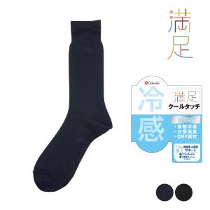 満足(マンゾク) 靴下 クルー丈 無地 疑似太リブ DRY素材 足底メッシュ 抗菌防臭 冷感 (33987W)福助 fukuske ふくすけ 爆買