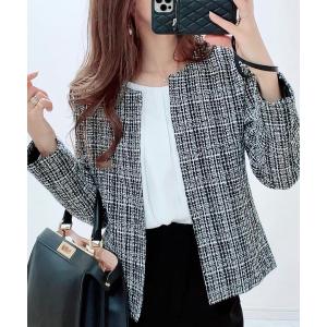 コート アウター ノーカラーツイードジャケット レディース