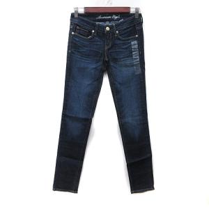 未使用品 アメリカンイーグル AMERICAN EAGLE スキニーパンツ デニム ジーンズ ダメージ加工 0 XS 紺 ネイビー /YI ●RY レディース