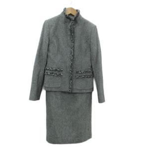 アンケート スーツ セットアップ スタンドカラージャケット ワンピース ノースリーブ 7 グレー フリンジ /SY20 ■GY61 レディース