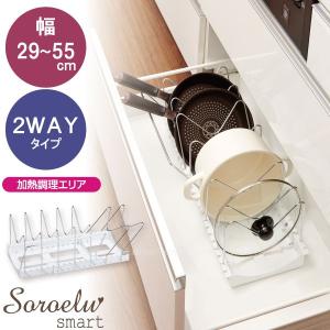 フライパン・鍋・ふたスタンド 2WAY ワイドタイプ PFN-NL / ソロエル スマート フライパン ざる ボウル スタンド シンク下 収納 伸縮 キッチン 台所