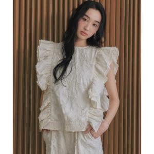 エルフランク ELFRANK 【2026SS】フェザー ジャガード ラッフル ブラウス【洗える】 (オフホワイト)