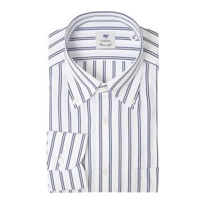 CHOYA Classic Style 長袖 ワイシャツ メンズ 綿100% ホワイト ネイビー ストライプ ボタンダウン CH_TSRC CH_2506CL【爆買】