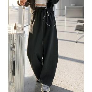 スウェットパンツ ジャージ 「予約受付中」「mily bilet」ラフなのに上品見え!ウエストレースがアクセントの主役級カーブスウェットパンツ