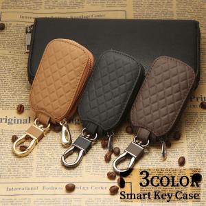 キーケース キーカバー スマートキーケース メンズ 男性 キーホルダー キルティング ファスナー フック付き 鍵入れ シンプル おしゃれ 高級感