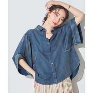 ブラウス シャツ シアーデニム5分袖シャツ レディース