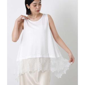 タンクトップ ノースリーブ レースヘムワイドタンク レディース