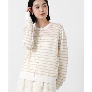 カーディガン ラメボーダークルーネックカーディガン レディース