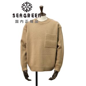 シーグリーン Seagreen クルーネックニット メンズ ミドルゲージセーター ロッキーメリノウール素材 ブラウン 茶 切り替え胸ポケット 国内正規品