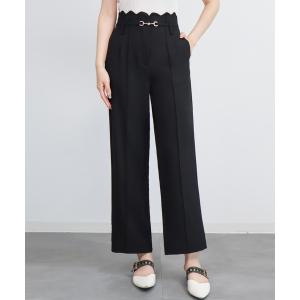 スラックス パンツ スカラップハイウエストパンツ レディース