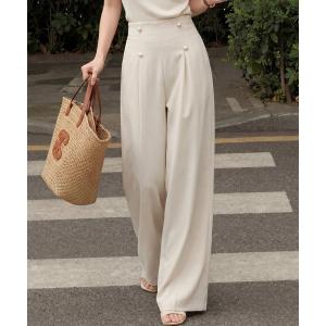 スラックス パンツ 「生地リニューアル」フロントパールワイドパンツ レディース