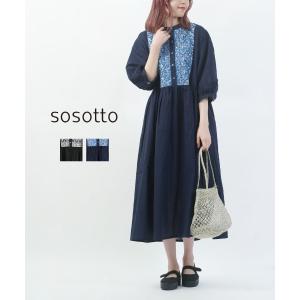 ソソット 綿麻リバティビブヨーク7分袖ワンピース sosotto 2026春夏新作 レディース 国内正規品 爆買