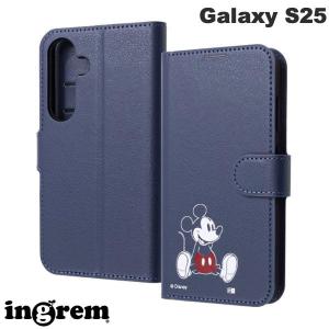 ingrem イングレム Galaxy S25 ディズニー 衝撃吸収 マグネットベルト シンプル 手帳型レザーケース ミッキーマウス_sitting ネコポス送料無料