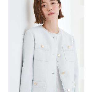 ジャケット ノーカラージャケット 「ハレの日・通勤」きちんとからカジュアルまで着回せる、ミドル丈ツイードジャケット レディース