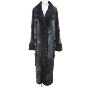 ロルフィ シュルテ ROLF SCHULTEロ リバーシブル ラビットファー コート ロング丈 40 灰系 チャコールグレー 総柄 クリップホック 切替 レ