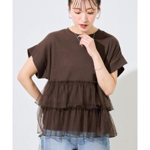 tシャツ 限定展開 ライト ワッフル チュール ドッキング 半袖Tシャツ レディース