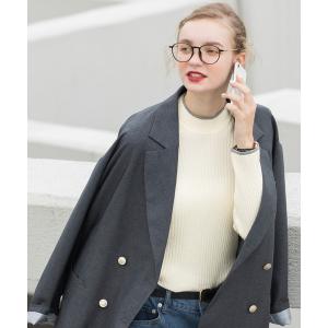 ニット セーター 「至福のカヌレニット」配色パイピングハイネックリブニットプルオーバー レディース