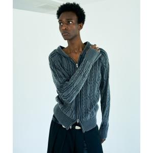 パーカー STONE WASH DOUBLE ZIP CABLE KNIT HOODIE / ストーンウォッシュ加工ダブルジップケーブル柄ニットフーデ