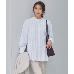 ブラウス シャツ 「セレモニー」バンドカラー タックブラウス レディース