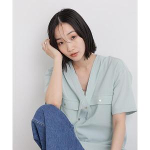 ブラウス シャツ メランジストレッチポケットVネックブラウス(セットアップ可) レディース