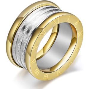 【並行輸入品】11mm ゴールド/ブラック ステンレススチール ローマ数字 クラシック 結婚指輪 プロミスリング メンズ レディース 鉄 ゴールド