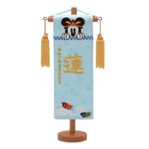 【五月人形】[QRコード申込式]ディズニー 名前旗刺繍 ミッキー 高さ30cm 特小サイズ(734041)男の子 台付き 水色 ブルー 端午の節句
