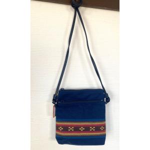 ミンサー織 ポシェット バッグ 紺色 2ファスナー