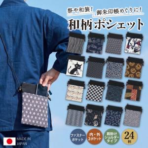 和柄ポシェット 24柄 / 日本製 ショルダーバッグ 肩掛け 和柄 バッグ 御朱印帳入れ スマホ 長財布 綿100% ファスナー付 ポケット 青海波 参拝 お出かけ 和雑貨