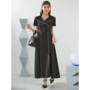 ワンピース バイカラーハーフスリーブトレンチフレアワンピース