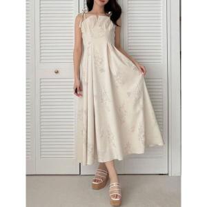 ワンピース リネンライクショルダーリボンキャミワンピース