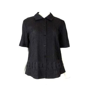 ミスパリ MISS PARIS プリーツ シャツ ブラウス シームデザイン 切替 シアー シフォン リネン コットン 半袖 M 9 黒 ブラック レディース