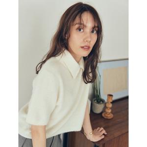 ニット セーター ポロ衿クロップド丈モヘアニットトップス レディース