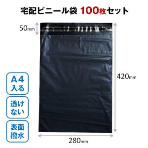宅配ビニール袋 100枚セット 黒色 W28×H42cm シールテープ付き 梱包 発送 透けない 破れにくい 強力粘着 表面防水加工 大きい サイズ A4 すっぽり 入る OPP袋