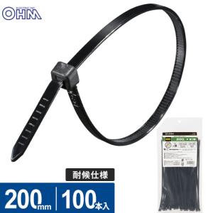 オーム電機 結束バンド ロックタイ 200mm 耐候 黒 100本入 LT-200W100BK