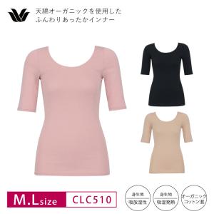 ワコール Wacoal レディスインナー CLC510 トップ ふんわりあったかタイプ 天綿オーガニック 5分袖 半袖 肌着 M・Lサイズ