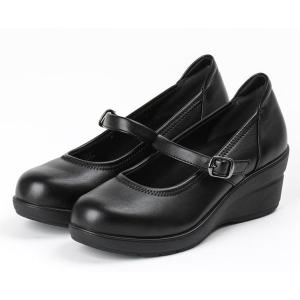 Lady worker(レディワーカー) ベルト付き ウェッジソールパンプス(ブラック・サイズ:21.5cm) 返品種別A
