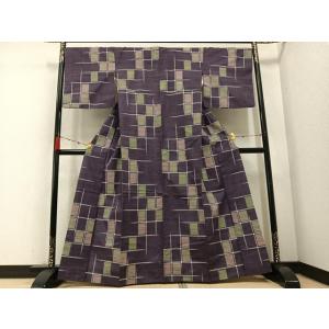 平和屋着物●上質な紬 変わり格子 京王百貨店扱い 正絹 逸品 AABC9699ph