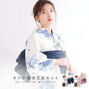 【先行予約/5月中旬より順次発送予定】 浴衣 レディース セット 簡単(ゆかた・しわ兵児帯・下駄・着付け本・腰ひも)綿 紺 紫 ピンク 白 青