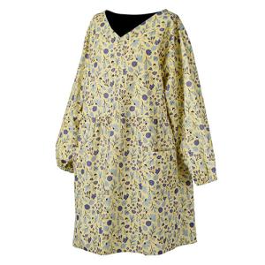 レップ カッポウギ 割烹着 フラワーリーブス ワンマイルウェア Vネック ウエストふんわりギャザー 優しい印象 イエロー YE REP-573525 代引不可