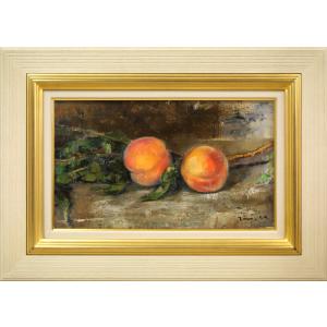 伊藤 仁「静物画(桃)」油絵・M6号■札幌の古い建物、風景を数多く描く■赤レンガの画家と呼ばれる【真作保証】小竹美術