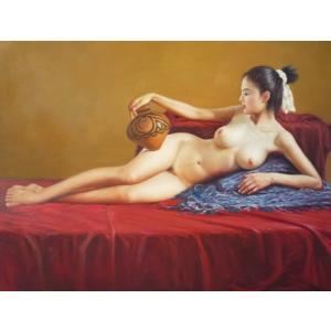 肉筆絵画 油絵 油彩画 洋画 木枠付 (油絵額縁付きで納品対応可) F12号 「壺を持つ裸婦」