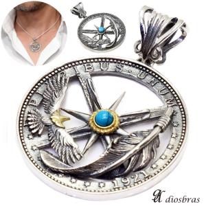 シルバー925 コイン 太陽神 サンマーク フェザー トップ イーグル クロウ 爪 フェザーネックレス インディアンジュエリー ネイティブ ペンダント ゴールド 真鍮