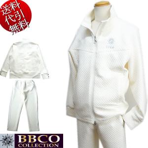 新作 BBCO COLLECTION/ビビコ ふくれニット柄 立体感 太陽マーク刺繍 メタル ZIPUP 長袖長パンツ上下セットアップスーツ SETUP 白:48(L)/50(LL/XL) 56-5393-01