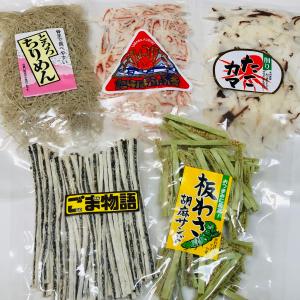【送料無料】 バラエティ豊かな珍味5点セット! ごま物語 (黒)+ 板わさ胡麻サンド+たこカマ+とろろちりめん+たらばふぶき 各40g 計200g