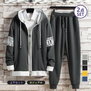 メンズ 薄め 2点セット ジャージ 上下セット 春夏 スウェット セットアップ 英字プリント パーカー フード付き カジュアル 格安