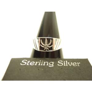 横浜最新 シルバー925SILVER銀♪魅惑のリング 印台 マリファナ 18号 4g メンズレディース 送料220円a74